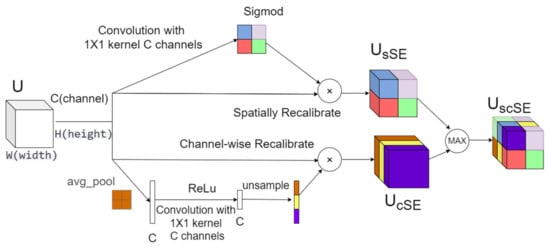 - Roy, A.G.; Navab, N.; Wachinger, C. Concurrent Spatial and Channel ‘Squeeze & Excitation’ in Fully Convolutional Networks. In Proceedings of the Medical Image Computing and Computer Assisted Intervention—MICCAI 2018, Granada, Spain, 16–20 September 2018; Springer International Publishing: Cham, Switzerland, 2018; pp. 421–429. [Google Scholar]
