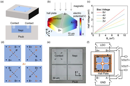 - Cao, B.; Lei, K.-M.; Zou, H.; Martins, R.P.; Mak, P.-I. Exploring the Performance of Hall Sensor with Substrate Bias Modulation in SOI Process. IEEE Sens. J. 2024, 24, 27365–27372. [Google Scholar] [CrossRef]