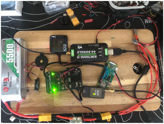 The core of the system was a 3Dr Pixhawk autopilot, selected for its affordability, open-source flexibility, and autonomous functionality. This controller was equipped with sensors including a UBlox M6 GPS and Compass module, an MPU6000 accelerometer and gyroscope, and a barometer. The Pixhawk was imaged with Ardurover v4.2.3 firmware, which is part of the open-source Ardupilot ecosystem and specifically supports autonomous ground and water vehicles. Communication between the tracker and the research team was achieved using a SiK telemetry radio, later augmented with Drone Engage, a 4G-based cloud telemetry platform utilizing Vietnam’s cellular network for real-time data logging and remote internet access. To integrate Drone Engage, a Raspberry Pi Zero was used as a companion computer, connected to the Pixhawk via an industrial grade 4G dongle. This setup facilitated seamless communication with the Drone Engage server and allowed real-time telemetry data to be accessed and logged remotely. The final hardware configuration is illustrated in Figure 3, and an image of the prototype setup is shown in Figure 4.