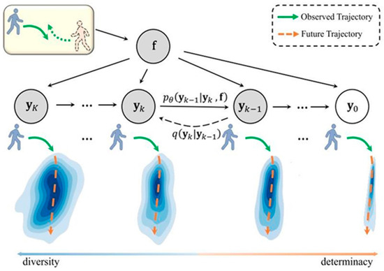 28] considered trajectories’ geometric equivariance, proposing combining an equivariant Transformer with a denoising diffusion to generate future trajectories with historical information and random Gaussian noise.