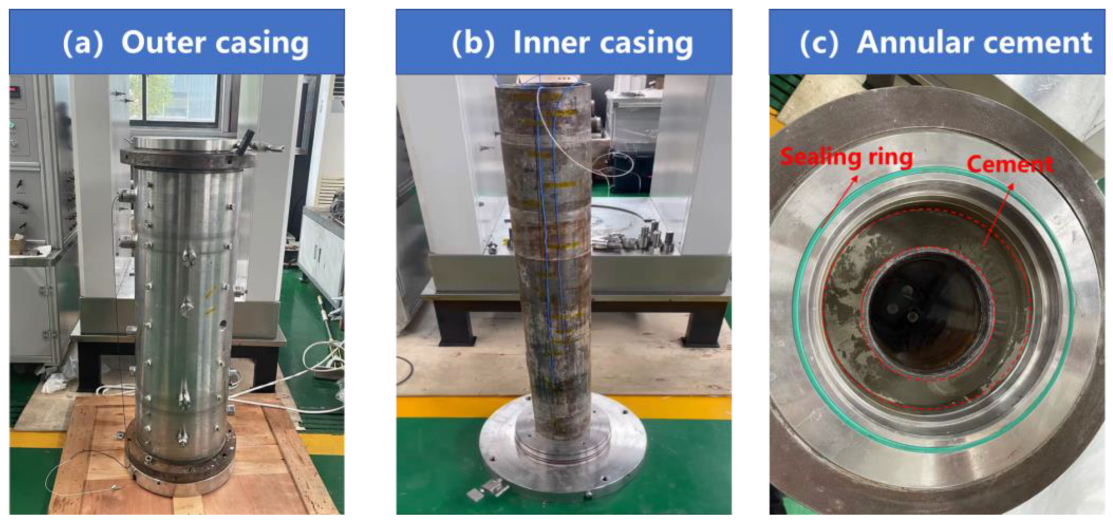 - Chen, S.; Wang, L.L. Experimental study on the integrity of cement sheath under cyclic loading. China Pet. Mach. 2024, 52, 107–113. [Google Scholar] [CrossRef]