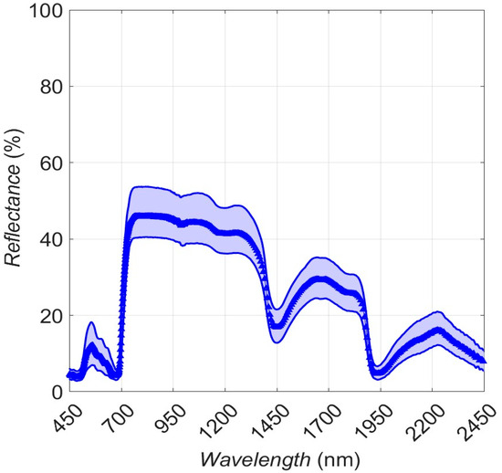 The effect of solar light intensity fluctuations and tree leaves’ fluttering due to wind speed on canopy-level reflectance measurements has been highlighted by extensive past work on field spectroscopy [35]. In the next sections, the quality control criteria that were followed for the top-of-the-canopy reflectance spectra are detailed.