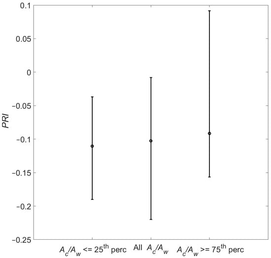To account for the structural features of the canopies and illumination conditions that influence the measured reflectance spectra, the proportion of the cooler areas of the canopy to the warmer areas of the canopy (hereafter, ) obtained from thermal imaging analysis were used. This parameter is an indicator of the shadowed and sunlit areas and is, therefore, related to both the biophysical attributes of the part of the canopy captured and illumination conditions in every thermal image. This will be further explored in Section 3.1.