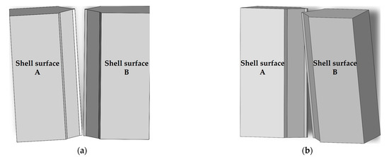Figure 4b shows the forward–backward tilting where an angle exists between shell surface A and shell surface B.