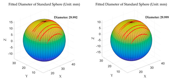 Comparison of fitted diameter results for the standard sphere (unit: mm).