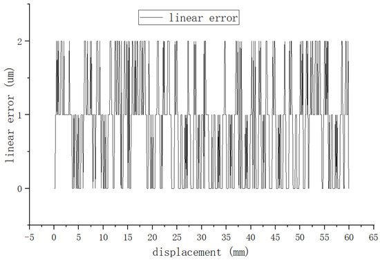 Firstly, we evaluated the stability and repeatability of the system by monitoring for any errors or fluctuations in the position information output by the system as the linear motor was repeatedly moved to the same location. After testing, it was found that the fluctuation was basically maintained in the range of 0~3 μm. The source of these fluctuations is related to the circuit noise interference and changes in the temperature environment. However, the magnitude of these fluctuations does not impact the detection accuracy. The reciprocation error is shown in Figure 22.