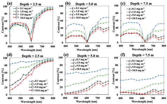 3.2. The Effect of Chlorophyll Scattering on the Spectral Contrast–Depth Dynamics