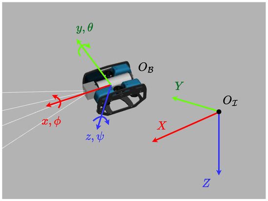 The vehicle used in this article is using the “No Heavy Configuration Add-on” thruster configuration [35], which uses 6 thrusters and has no thruster positioned with a pitch component; therefore, it has no pitch control. Thus, we consider that .