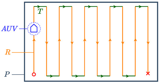 Since performing turn T requires the acceleration and deceleration of the underwater robot, as noted in the literature [17,19], we posit that an energy-efficient CPP algorithm seeks to minimize the number of turns . Minimizing the number of turns is equivalent to minimizing the number of straight paths required for coverage, since every two straight paths R are connected by at most one turn T as can be seen in Figure 3. Therefore, as the first step of out CPP methodology, we seek to partition into polygonal subregions, such that the number of straight sweeping paths required for complete coverage is minimized.