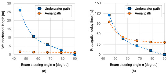 Comparison of (a) underwater length, (b) propagation delay.
