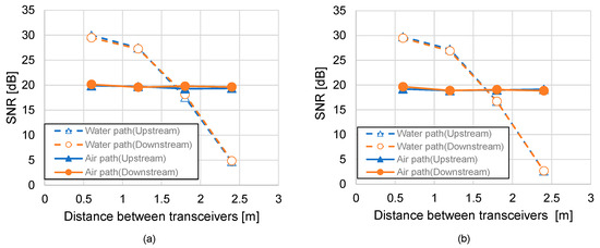 Static SNR characteristics of (a) tap water, (b) shallow seawater.