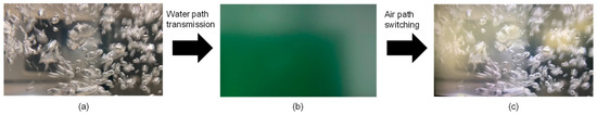 A 4K video image of (a) original, (b) underwater optical path, (c) aerial optical path.