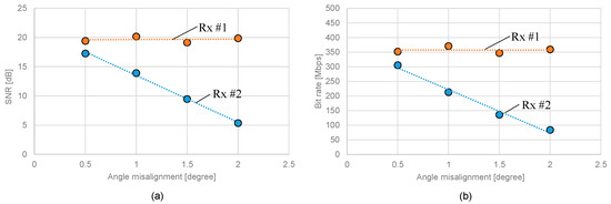 Tolerance to angular misalignment of (a) SNR and (b) bit rate.