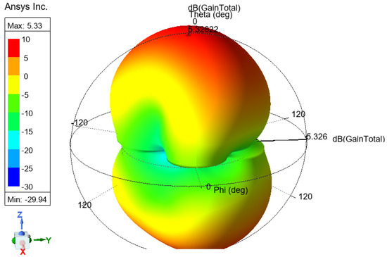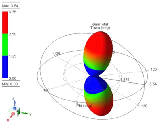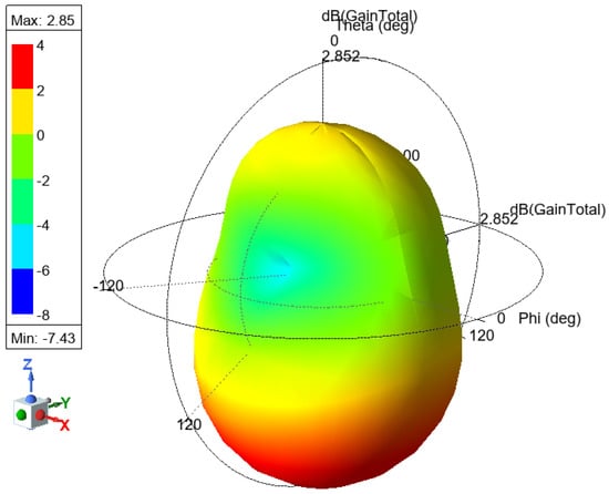 The antenna gain measures how effectively an antenna converts input power into radiated power in a specific direction and represents it in a different direction. Figure 12 shows the 3D gain plot for the mentioned antenna.