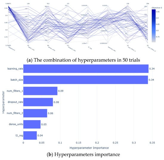 In Optuna, users need to define an objective function, which is typically the model’s loss function or accuracy metric. Through multiple trials in a study, Optuna searches for the hyperparameter combinations that optimize the objective function, i.e., minimizing the loss function or maximizing accuracy. Using Optuna, the existing MLCNN model is tuned by setting the return value of the objective function as the accuracy, making the goal of optimization to maximize accuracy. A total of 50 optimization trials are conducted. The seven hyperparameters and their optimization ranges are shown in Table 1.