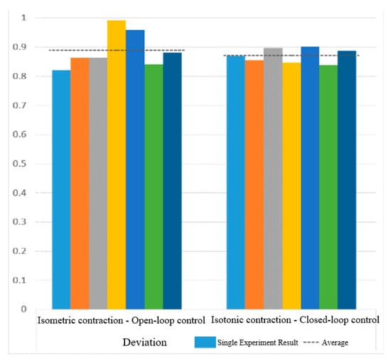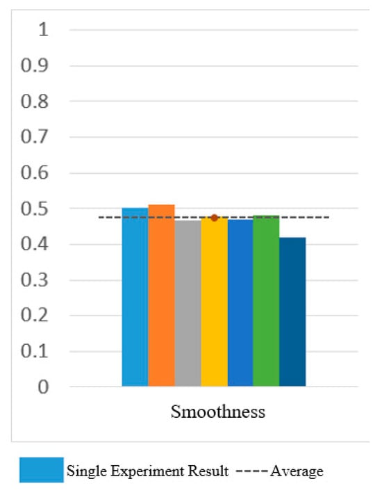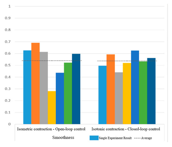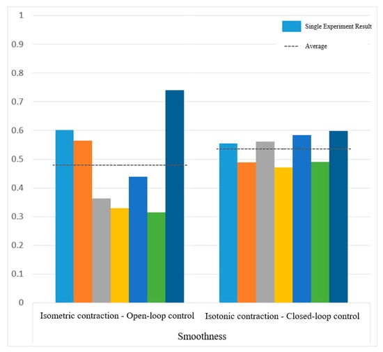 Figure 30 and Figure 31 show the motion smoothness and range deviation results. Under open-loop control, the average smoothness was 0.5388, with a range deviation of 0.8885. In contrast, closed-loop control had a smoothness of 0.5381 and a range deviation of 0.8711. While both methods had similar smoothness, open-loop control was less stable, exhibiting greater fluctuations than the more consistent closed-loop performance.