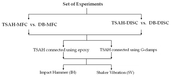 Further, the peak power density of MFC and disc PZT patches was determined by dividing the absolute peak power value by the surface area of the PZT patch. The peak power density of the TSAH-MFC and DB-MFC was calculated as 7.61 mW/mm2 and 3.08 mW/mm2, whereas the peak power density of the TSAH-DISC and DB-DISC was calculated as 2.07 mW/mm2 and 0.34 mW/mm2, for SV vibrations when the TSAH was adhesively bonded to the host structure. It is evident from the power density values that the TSAH configuration was able to increase voltage and, consequently, power in both MFC and disc PZT patches. MFC patches, however, performed better than circular disc PZTs from power scavenging considerations.