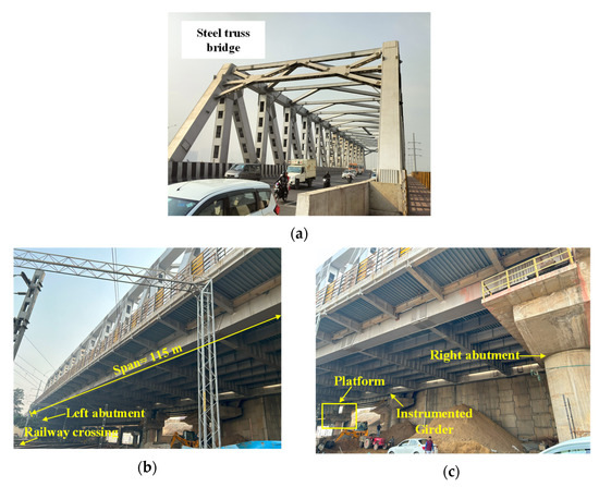 The ROB is a truss-type steel structure with a skew in plan with an angle of around 35°. The ROB steel structure weighs 2385 metric tonnes and is Asia’s heaviest steel bridge, with a single span length of 115 m and a carriageway width of 21 m (Figure 14). As per the estimates of the National Highways Authority of India (NHAI), the mentioned ROB has a traffic volume of around 500,000 passenger car units per day.