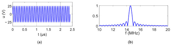 Electrical signal imposed on the IDT: (a) time signal; (b) signal spectrum.