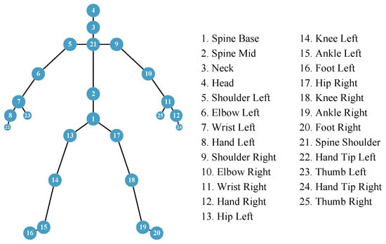 List and locations of 25 skeletal points.
