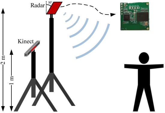 Experimental setup with one radar and one Kinect.