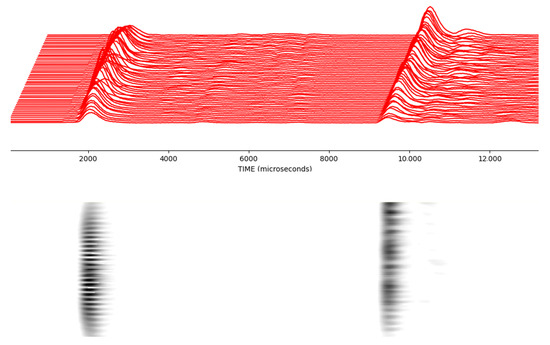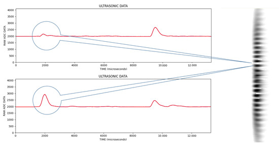 In the signal information obtained from ultrasonic sensors, the vertical axis is the magnitude of the signal and the horizontal axis is the sampling point. An example of the signal data obtained in each scan is given in Figure 6.