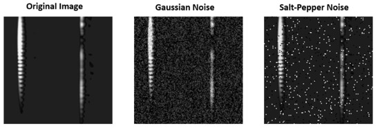 The comparison of images with Gaussian noise and salt-and-pepper noise added with the original image is shown in Figure 21.