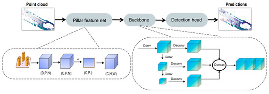 17], which employs a 2D semantic segmentation network to extract the target object’s pixels from the RGB image. These pixels are subsequently projected onto the LiDAR point cloud to create enhanced point cloud data. The colored points are then input into the PointPillars [