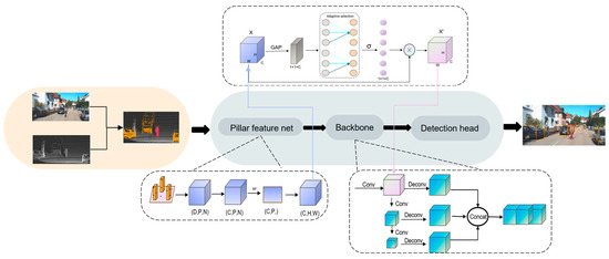 16] into the PointPillars network to dynamically emphasize relevant features, thereby enhancing feature extraction at both local and global scales.