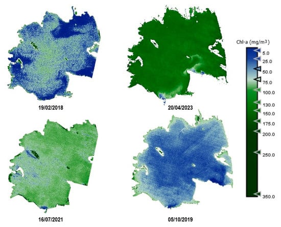 The highest Chl-a values occurred in spring 2018 and 2023, as shown in Figure 5.