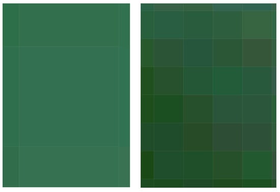 Figure 2 illustrates the atmospheric correction process by comparing an image with reflectance measured at TOA and bottom of atmosphere (BOA), i.e., after atmospheric correction. The image corresponds to the study area, dated 22 May 2018. This figure shows how the haze effects of aerosols and molecular scattering are reduced, especially at lower wavelengths, and how the surface reflectance data have a better contrast of surface characteristics.