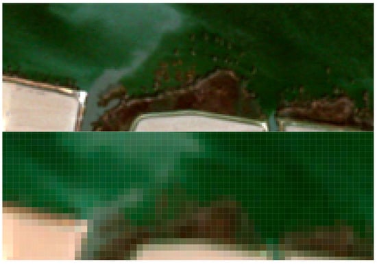 The spatial resolution of satellite images is one of the essential aspects of remote sensing, as the level of detail in an image is directly dependent on this factor. According to [46], spatial resolution determines the smallest object or feature in the real world that can be captured and thus the suitable applications for this product. A comparison has been made with an S2 image to study the spatial resolution capacity of the PerúSAT, using the images acquired on 20 April 2023. The S2 image processing was done according to [47], using the ESA Sentinel Application Platform (SNAP). The formulas used to retrieve each parameter in the S2 images have been developed in different studies specifically with data from the Albufera of Valencia and are summarized in Table 3.