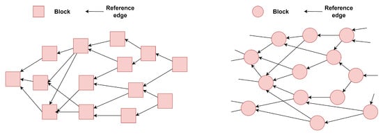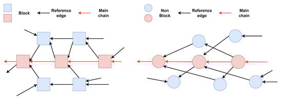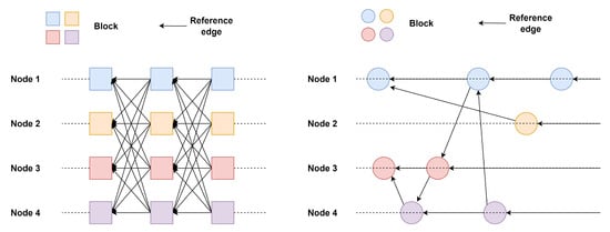 - Cao, K.; Lin, F.; Qian, C.; Li, K. A high efficiency network using DAG and consensus in blockchain. In Proceedings of the 2019 IEEE Intl Conf on Parallel & Distributed Processing with Applications, Big Data & Cloud Computing, Sustainable Computing & Communications, Social Computing & Networking (ISPA/BDCloud/SocialCom/SustainCom), Xiamen, China, 16–18 December 2019; IEEE: Piscataway, NJ, USA, 2019; pp. 279–285. [Google Scholar]