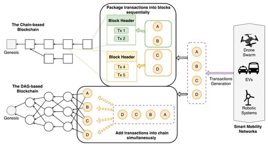 In addressing these challenges, blockchain technology has emerged as a powerful tool, particularly in enhancing security, privacy, and data integrity [15]. The decentralized, transparent, and tamper-proof nature of blockchain offers significant advantages for managing various aspects of smart mobility systems. Among the different blockchain frameworks, directed acyclic graph (DAG)-based blockchain systems have gained particular attention for their scalability, low latency, and ability to process transactions in parallel [16]. These features make DAG-based blockchains ideal for real-time applications such as autonomous vehicle coordination, traffic management, and microtransactions for services like ride-sharing and EV charging.