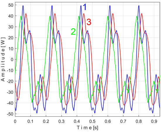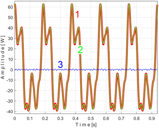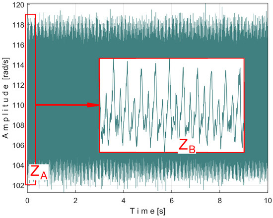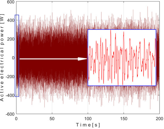 This capability has already been fully demonstrated before in the analysis of the vibration signal sV (as shown in Figure 28, Figure 29, Figure 30 and Figure 31) and instantaneous angular speed signal sI (as shown in Figure 37, Figure 38 and Figure 39). Since the active electrical power is defined as a result of low-pass numerical filtering of the instantaneous electrical power, the high-frequency variable components are not available inside the signal sP.