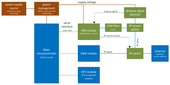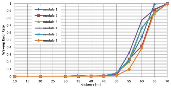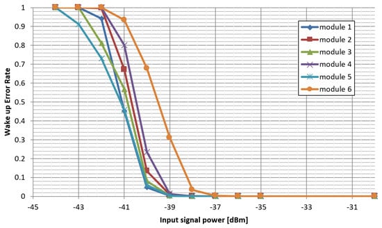 - Reading range: similar to radio systems, we can use the sensitivity metric, which is the easiest to compare. However, the effective communication range is greatly influenced by the selected operating band—most often used are unlicensed ISM bands: 125 kHz, 13.56 MHz, 433 MHz, 868/915 MHz, 2.4 GHz, and 5.8 GHz. Similar to RFID systems, the largest ranges are obtained in the 868/915 MHz band due to propagation conditions and legally permitted transmitter powers for the wake-up systems. For this reason, if we care about the reading range, comparisons should concern the same operating band and, additionally, the antenna system.