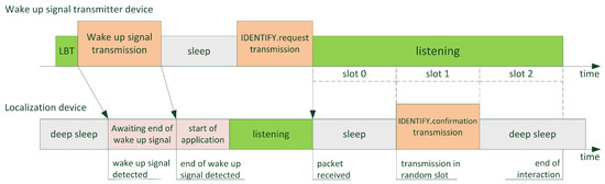 - Wake-up signal detector that enables peripheral sensors and other devices to asynchronously wake up the localization device and process external events.