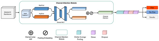 Feature extraction is performed using MobileNetV2 as the backbone, which is lightweight and well-suited for computational efficiency [17,36]. To further improve the model’s focus on relevant features, we incorporate a channel-wise attention-based module after feature extraction [46]. This module helps the model emphasize critical features that are essential for distinguishing between fire, smoke, and natural scenes, thereby enhancing classification accuracy.