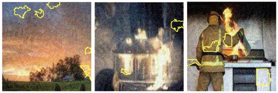 Fire detection has evolved significantly with the application of machine learning and deep learning, especially through image processing techniques [9,10,11,12,13,14,15,16,17,18,19,20,21,22,23]. Traditional fire detection methods based on color and motion analysis were early approaches in this field but often failed under varying lighting conditions, leading to high rates of false positives [10]. These early methods, while foundational, could not reliably handle dynamic environments where background changes impact detection accuracy. With the advancement of deep learning, convolutional neural networks (CNNs), such as VGG and ResNet, have become prevalent in fire detection research [14,17,19,26,27,33,37]. These models capture complex visual patterns specific to flames, improving the precision and recall of detection systems in diverse environments. However, despite their success in classifying fire and non-fire images, these models often lack the nuanced focus necessary to isolate flame-specific features, leading to inconsistencies in complex scenes where background elements interfere with model predictions [26].