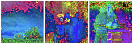 The comprehensive evaluation across different color spaces revealed critical insights into feature representation. The RGB color scheme consistently outperformed alternative representations, achieving 95% accuracy compared to other color spaces’ 90–92% performance. This superiority stems from RGB’s ability to capture comprehensive color and intensity variations crucial for distinguishing flame characteristics. Our analysis showed that while Grayscale and HSV schemes provided competitive results, they struggled to capture the nuanced visual cues essential for accurate fire detection. The RGB scheme’s ability to preserve subtle color gradients and intensity variations proved instrumental in differentiating fire from complex backgrounds. LIME visualizations further substantiated these findings, demonstrating that the RGB color space provides the clearest distinction between flame and non-flame regions, underscoring the importance of color information in developing robust fire detection models (as shown in the Figure 3, Figure 4, Figure 5 and Figure 6). The ablation study results further validate our architectural choices, demonstrating that the channel-wise attention mechanism contributes significantly to the model’s performance. The 3% improvement in accuracy from adding channel-wise attention confirms the mechanism’s effectiveness in focusing on flame-specific and smoke features while suppressing background noise.