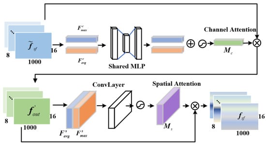 Redundant information exists in the spatio-spectral features extracted by Adaptive GCN (AGCN). Therefore, this paper introduces CBAM [30] (Figure 3), which uses an attention mechanism in both feature space and feature channel dimensions to suppress redundant features and improve the quality of the spatio-spectral features.