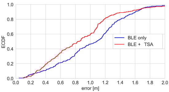 According to the ECDF plots presented in Figure 20, the use of this sensor resulted in a reduction in the positioning error by several centimeters.