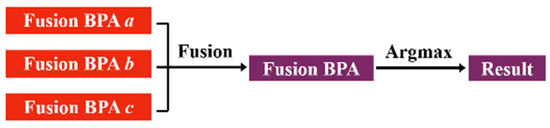 What we have to be aware of is that we ignored the eight labels from to with extremely low BPA values, and approximately considered the sum of the BPA values of to as 1. Based on the classic DS evidence theory shown in (4) and (5), the fusion result is: