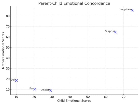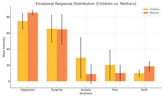- Cronbach’s Alpha: Internal consistency was assessed to ensure the reliability of emotional intensity measurements. Values above 0.7 indicated acceptable reliability, with for children and for mothers.