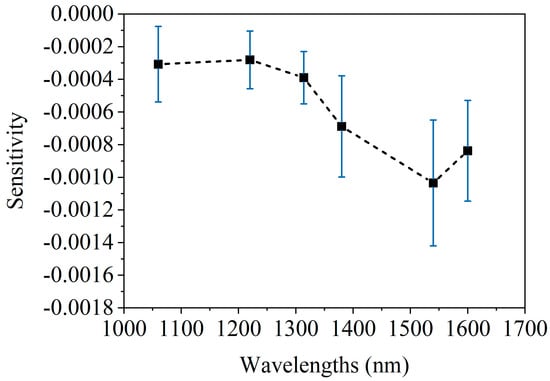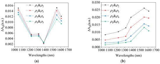 As can be seen from Figure 9b, the blood flow pre-stimulation stage lasted about 40 min, and the spectra at all six wavelengths were stimulated to a certain level. Among them, the change of at 1550 nm was the biggest, and the spectrum increased by 0.004 a.u. However, after the external blood flow disturbance was applied, the at all six wavelengths remained stable and did not change further.