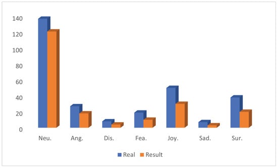 Specifically, although the emotion labels Anger, Disgust and Fear have a small number of samples and can be easily misclassified as the Neutral label with the largest number of samples, the overall prediction results show that the model’s predicted probability distributions of the emotion labels match with the actual distribution of the dataset. For example, the model’s higher prediction probability for the Neutral label matches the actual situation in the MELD dataset where neutral emotion expressions are more common. This is not a flaw in the model, but rather a reflection of its ability to accurately reflect real-world emotion distributions. In real-world emotion analysis scenarios, the distribution of emotions is inherently uneven, and neutral emotion expressions are usually more common, with strong emotions (e.g., anger, disgust, etc.) being relatively less common, which is related to the natural distribution of people’s daily language expressions and emotional states.
