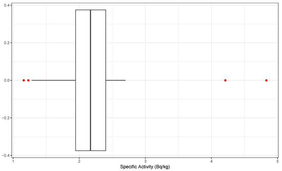 Visualization of specific activity: median, IQR, and outliers (red dots on the plot).