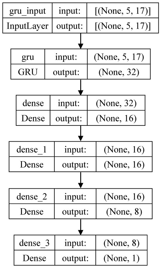 The AI model was constructed using a gated recurrent unit (GRU), such that time-series data could be used to train the model. A GRU is a type of neural network architecture used in machine learning, particularly for processing sequential data, like time series or natural language. It is a variant of recurrent neural networks (RNNs) and is designed to solve some of the challenges RNNs face, like the vanishing gradient problem, which makes it difficult for them to learn long-term dependencies in data.