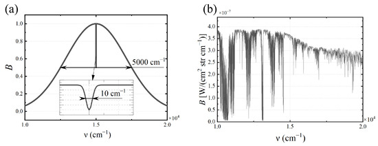 The simulation experiments use two different input spectra, as shown in Figure 8. These include the curve obtained by subtracting two Gaussian functions, respectively, with FWHM values of 5000 and 10 , and spectral data calculated from atmospheric radiative transfer data.