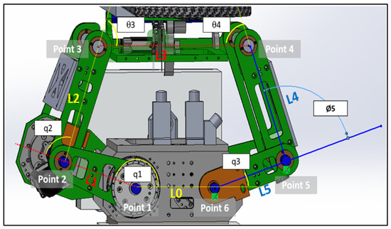 This section primarily focuses on using geometric principles to develop a kinematic model for the linkage subsystem. Figure 10 illustrates the points, link lengths, and joint angles associated with this system [21].
